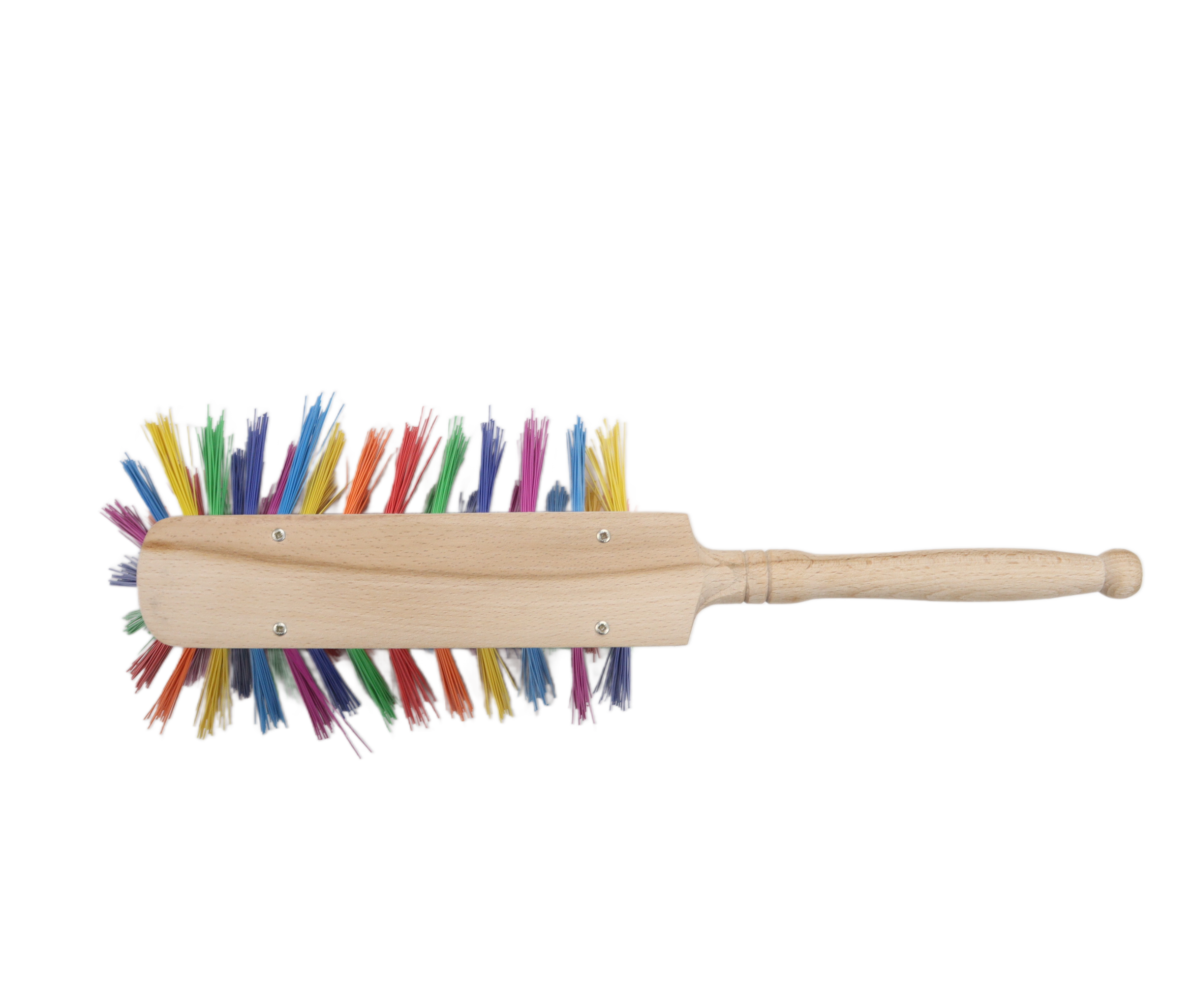 Der Griff des Handfeger "Konfetti" besteht aus hochwertigem Buchenholz mit Kunststoff-Besatz in den 7 Farben des Regenbogens, kann so einiges ab und ist ein langlebiger Begleiter.
