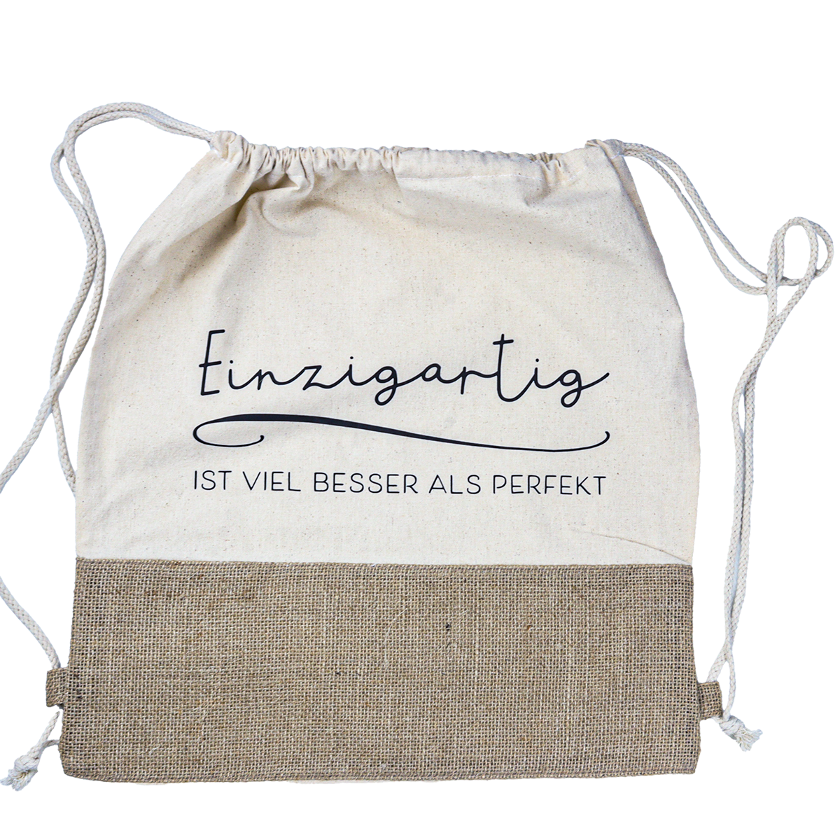 Der Sack ist aus natürlichen Stoffen, vor allem Jute. Der Beutel ist dazu noch langlebig und kann sehr oft benutzt werden. Die Tasche ist kompakt und hat gleichzeitig genug Platz für ihren Verwendungszweck und viele Einkaufartikel. Die groben und rauen Jute Fasern sorgen für die unvergleichliche Robustheit der Säcke. Dadurch können sie mehr als ihr Eigengewicht tragen, sind aber trotzdem noch sehr biegsam. Durch die stabile Taschenstruktur kann die Tasche gerade hingestellt werden und das Motiv ist immer gut sichtbar. Die Tasche ist modern und trendy. Der Beutel hat Griffe, wodurch sie leicht zu tragen ist und leicht überall mitgenommen werden kann. Auf der Materialseite finden sie wichtige Informationen wie Größe und Gewicht.