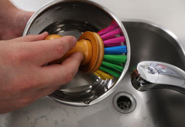 Die bunte Topfbürste macht das Reinigungen von Töpfen und Pfannen mithilfe des kurzen regenbogenfarbigen Kunststoff-Besatz kinderleicht. Dank dem ergonomisch geformten Griff aus lackiertem Buchenholz liegt die bunte Topfbürste gut in der Hand und bietet ein angenehmes Gefühl beim Halten.